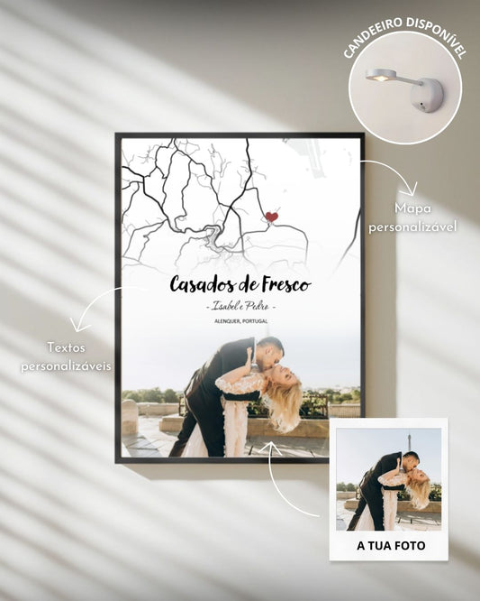 Quadro Love Location c/ 3 Polaroids & Mapa Personalizado