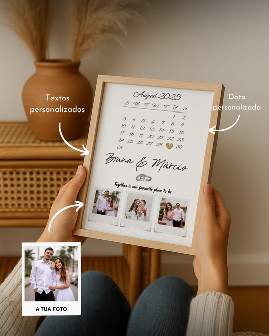 Quadro Calendário de Casamento c/ 3 Fotografias