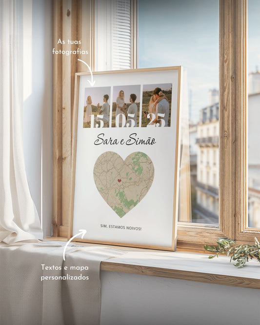 Quadro c/ 3 Fotografias & Mapa Personalizado