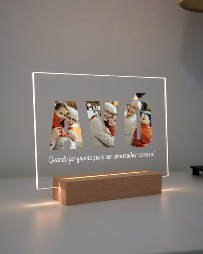 Illuminate memories. Made from high-strength crystal acrylic, with direct printing for perfect details, our lamps transform photos, phrases, and illustrations into light and art. The USB-powered base offers a soft glow that brings any space to life. More than decoration, it is a way to eternalize moments and give gifts with emotion.