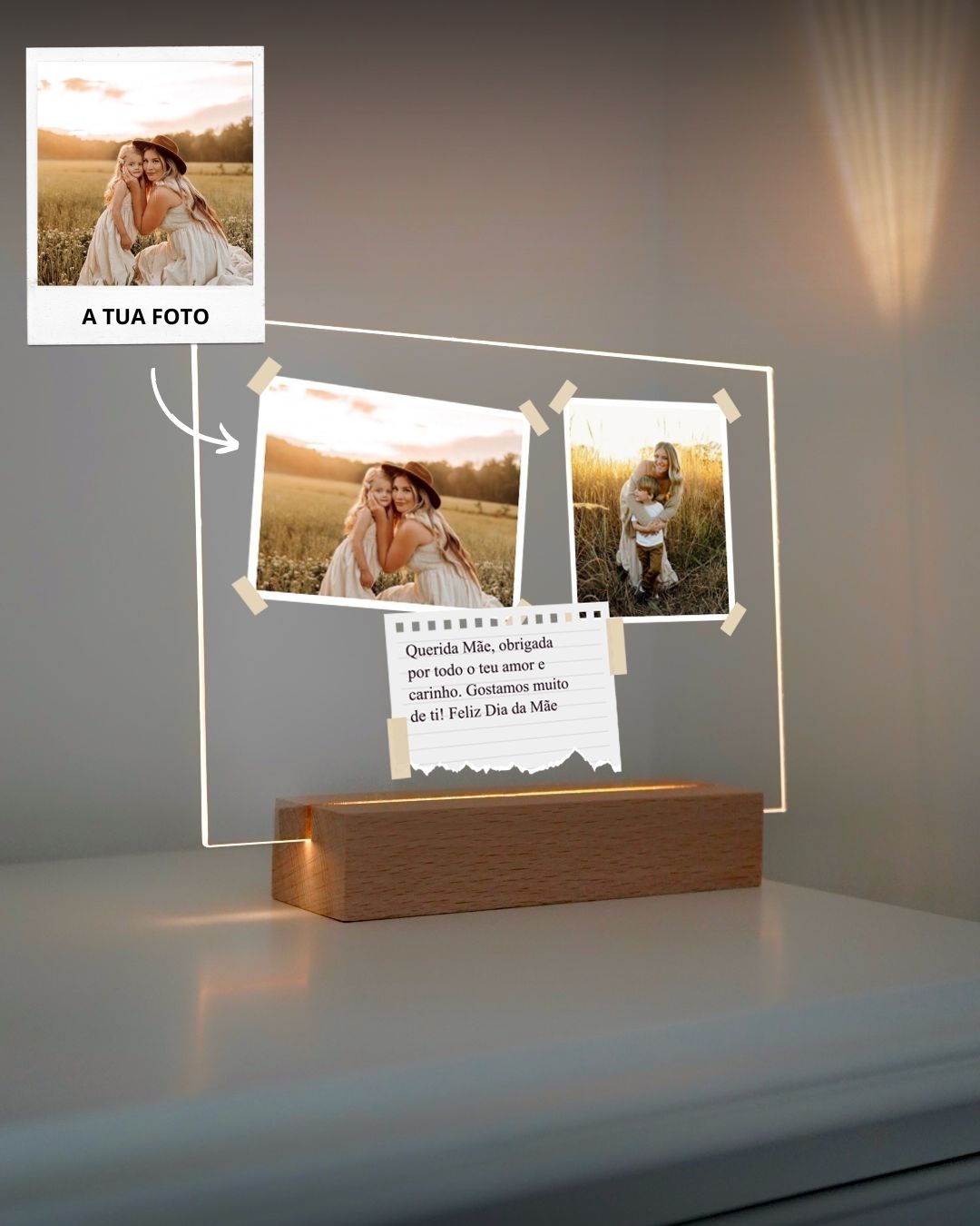 Ilumina recuerdos. Producidas en acrílico cristal de alta resistencia, con impresión directa para detalles perfectos, nuestras lámparas transforman fotos, frases e ilustraciones en luz y arte. La base con alimentación USB ofrece un brillo suave que da vida a cualquier espacio. Más que decoración, es una forma de eternizar momentos y ofrecer regalos con emoción.