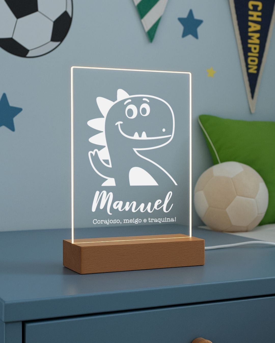 Lámpara Luz de Presencia c/ Nombre & Dinosaurio