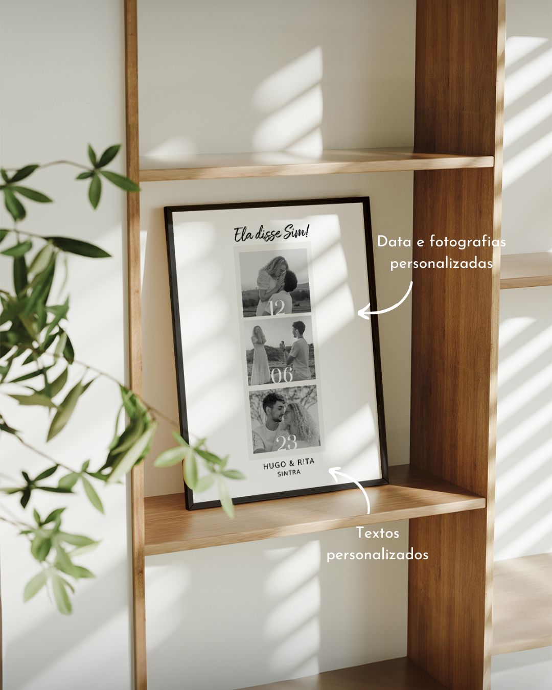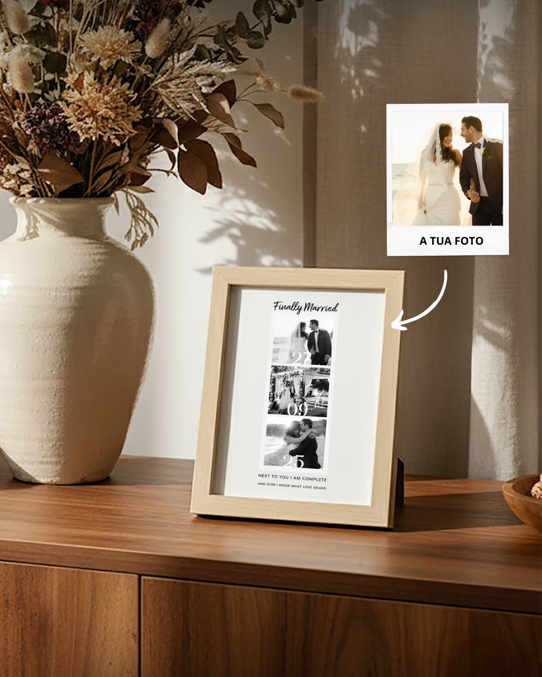 El regalo que queda para siempre. Incluye marco físico (Beige, Negro o Blanco) en MDF con vidrio protector, disponible en dos tamaños y listo para colgar. Creado a partir de tus fotos y dedicatorias, imprimimos en papel premium y añadimos el texto y los detalles que desees. Es más que un cuadro — es un pedazo de tu historia para decorar o regalar.