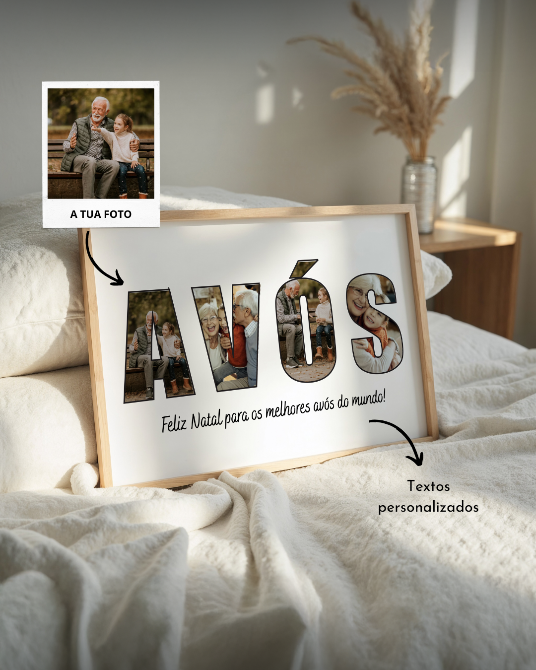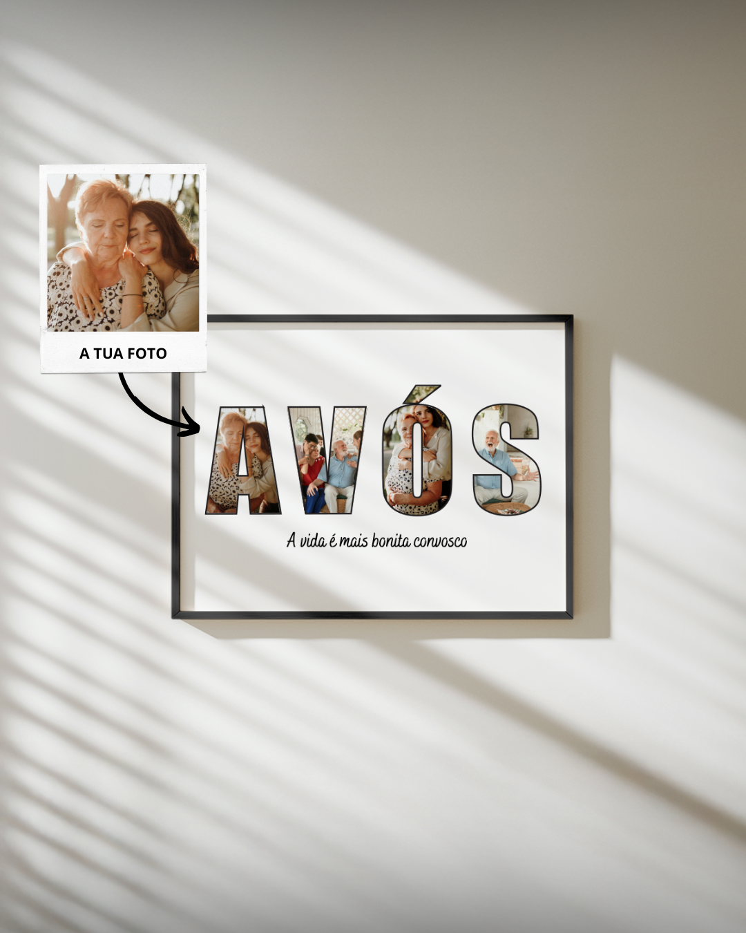 El regalo que queda para siempre. Incluye marco físico (Beige, Negro o Blanco) en MDF con vidrio protector, disponible en dos tamaños y listo para colgar. Creado a partir de tus fotos y dedicatorias, imprimimos en papel premium y añadimos el texto y los detalles que desees. Es más que un cuadro — es un pedazo de tu historia para decorar o regalar.