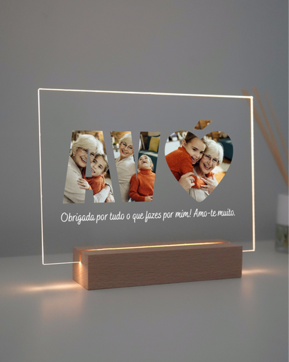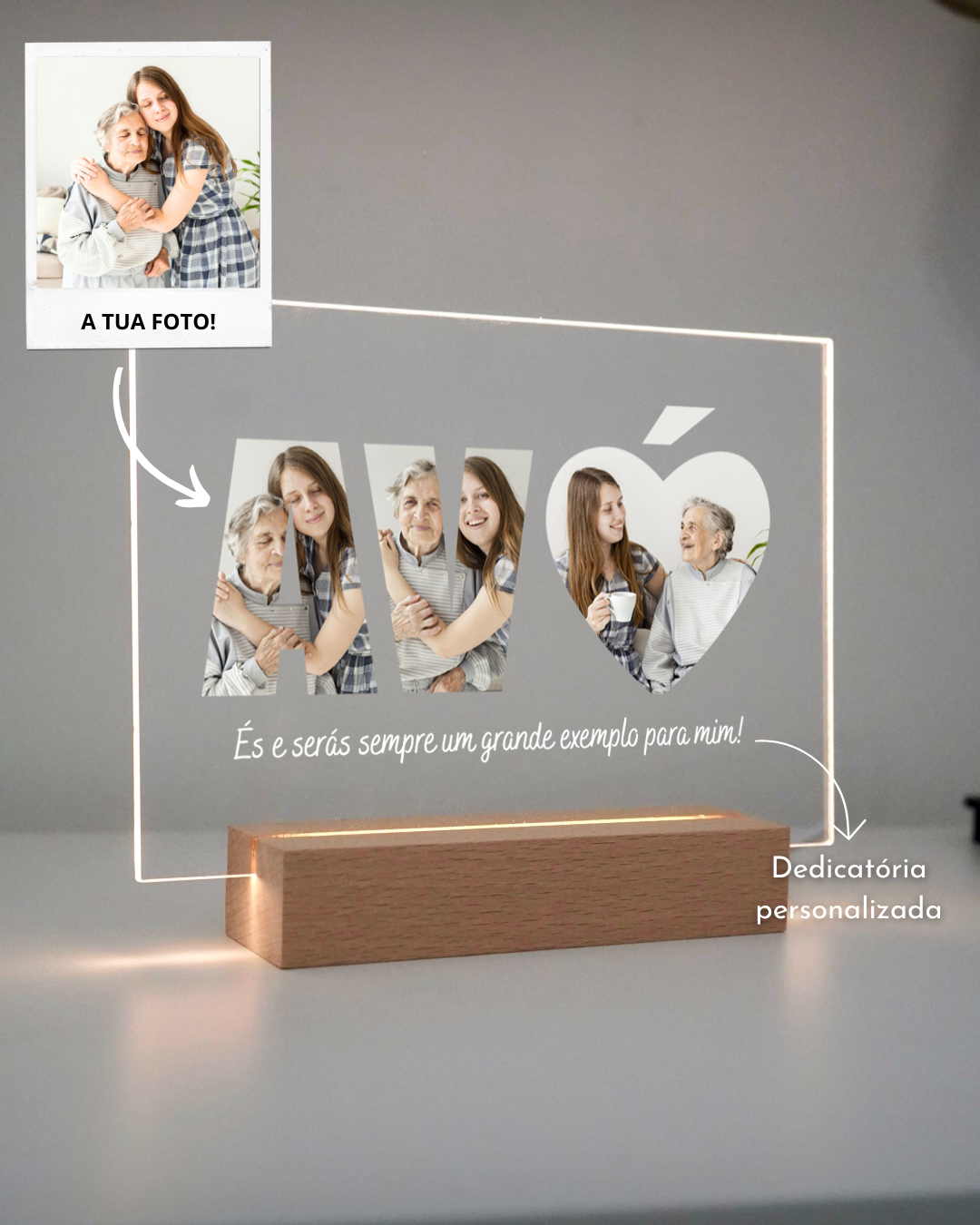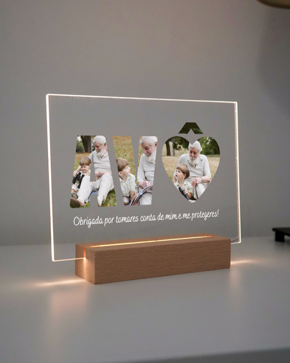 Material: Produzidas em acrílico cristal de alta resistência, com impressão direta para detalhes perfeitos, as nossas placas transformam fotos, frases e ilustrações em luz e arte. A base com alimentação USB oferece um brilho suave que dá vida a qualquer espaço. Mais do que decoração, é uma forma de eternizar momentos e oferecer presentes com emoção.