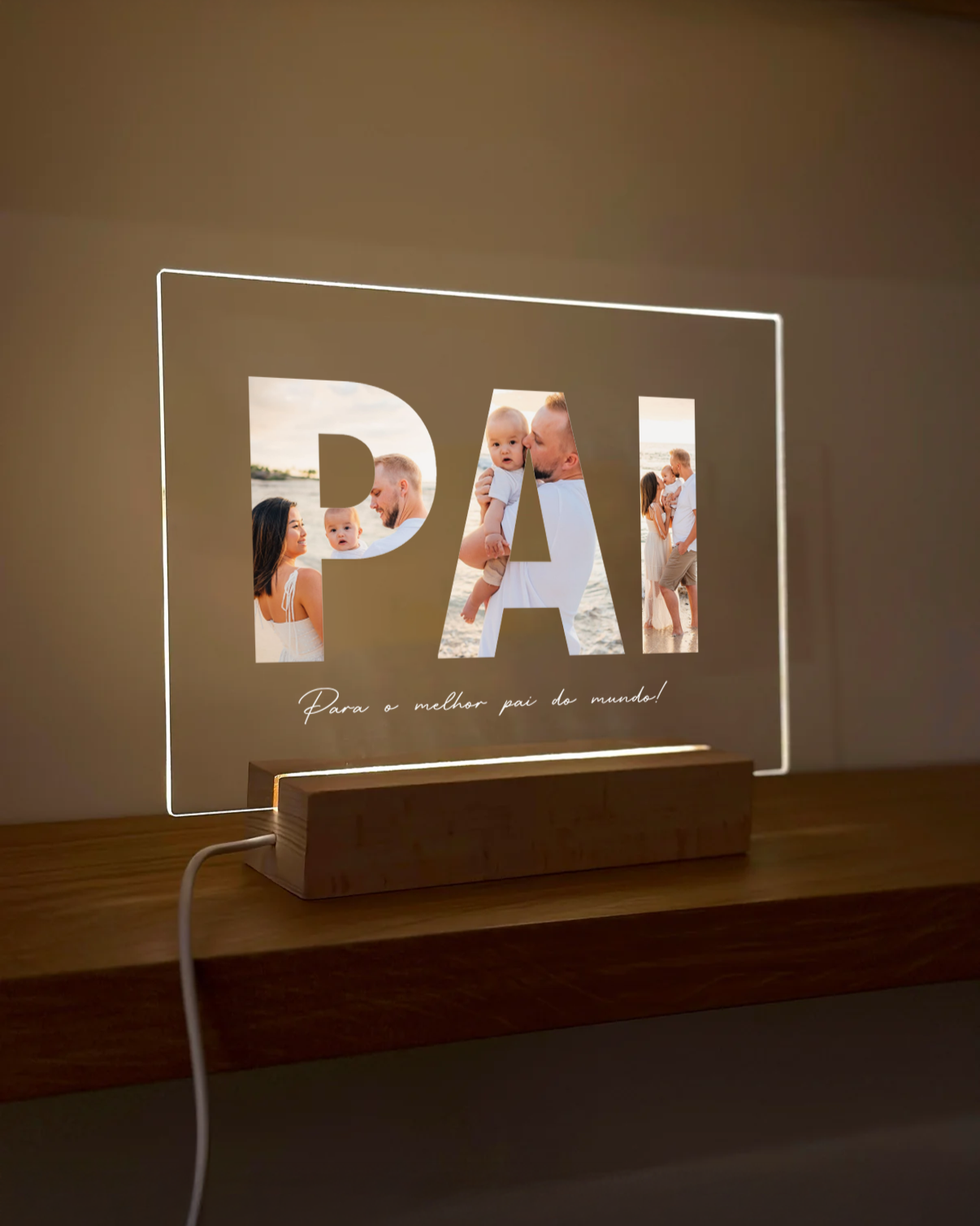 Placa "Pai" c/ 3 Fotografias - Dia do Pai