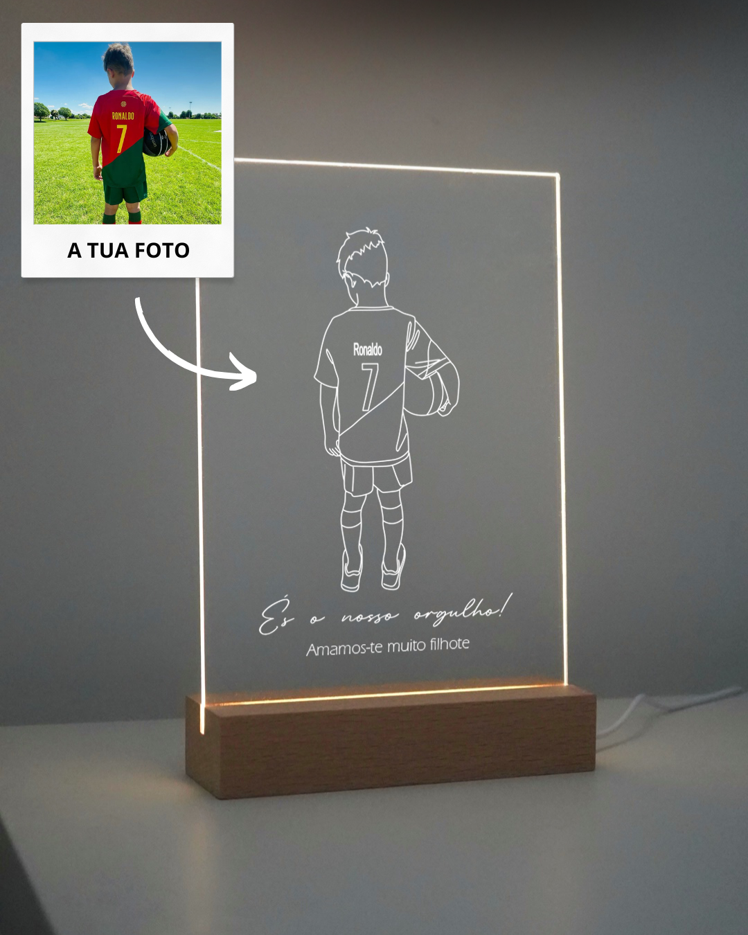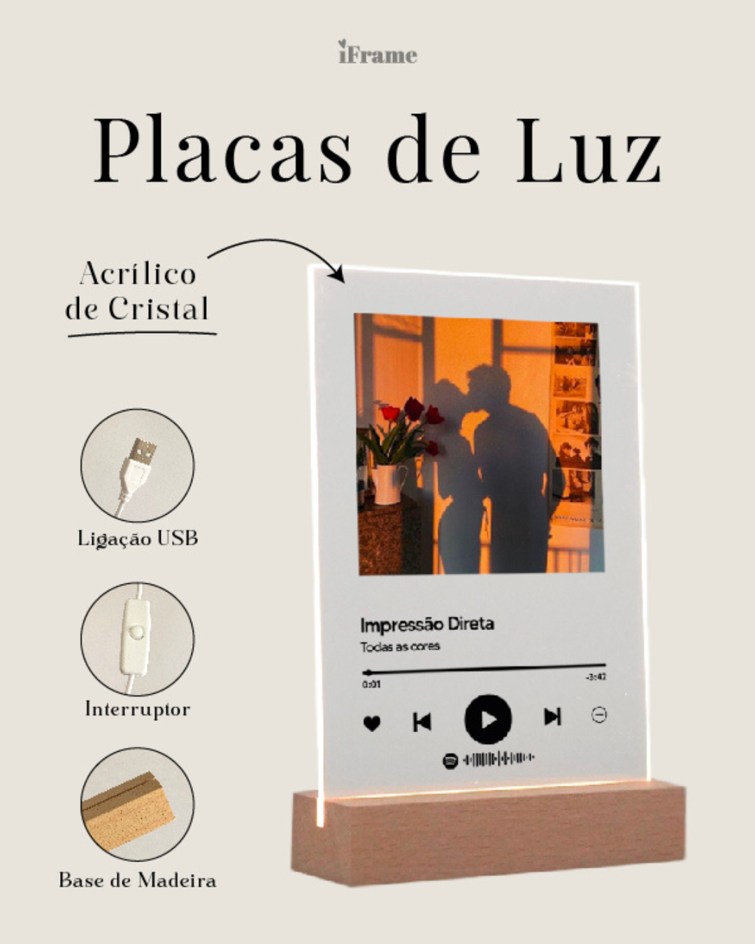 Todas as placas e molduras de luz personalizadas são produzidas em acrílico de cristal para garantir a melhor resistência e durabilidade. As impressões sobre o acrílico cristal são feitas de forma directa para conseguir dar a melhor qualidade de detalhe na impressão.