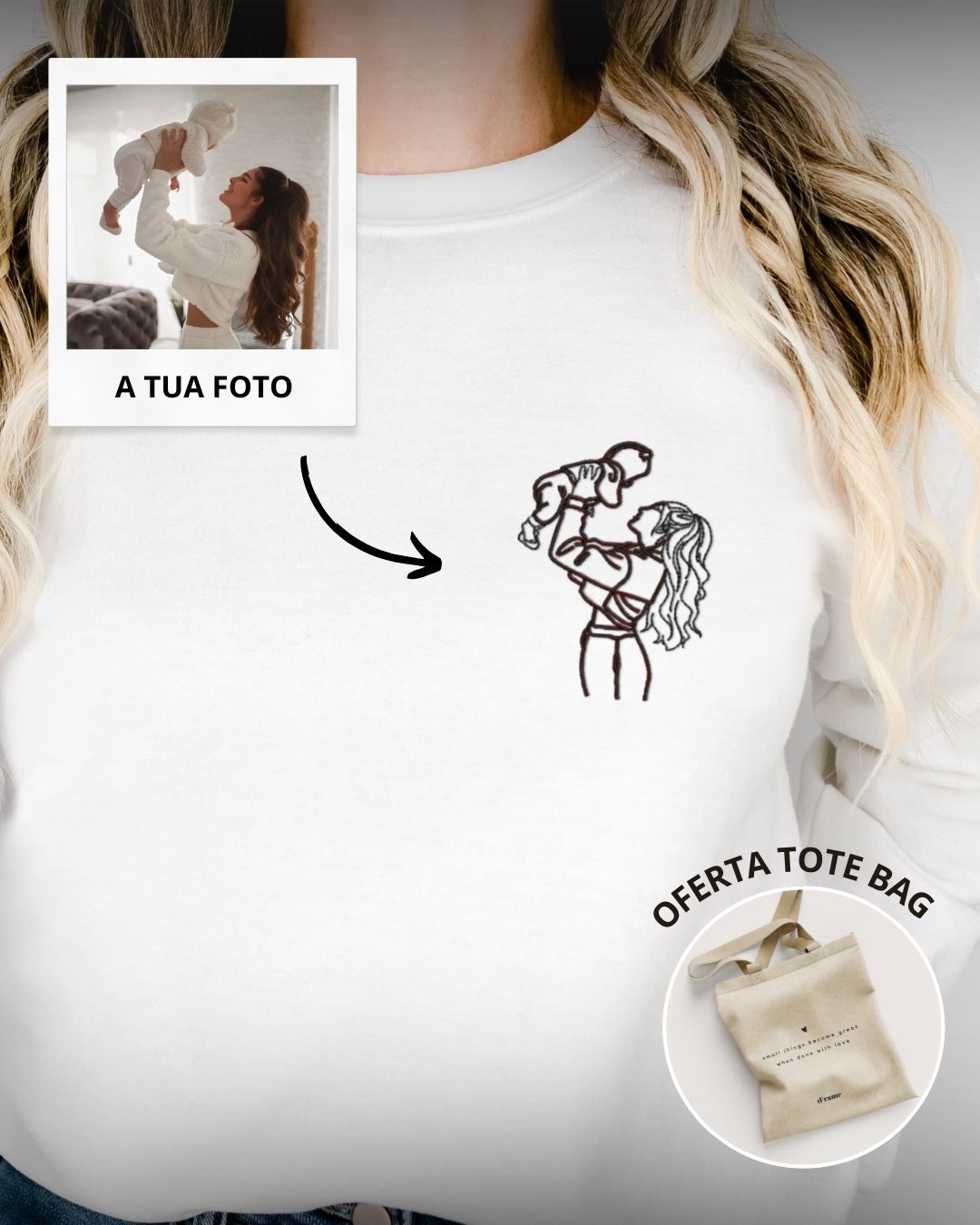 A nossa roupa personalizada é enviada juntamente com uma love bag (tote bag) de oferta. Apesar de não seguir embrulhado, a love bag pode depois ser embrulhada por si para oferecer a alguém especial!